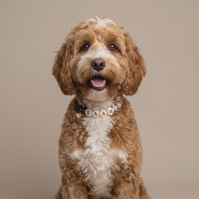 - Jullie Naam, Feestelijk Vertaald: De letterkralen maken deze band volledig persoonlijk. Of je nu kiest voor de glinsterende 'Glitter & Glamour' of de elegante 'Winterkristal' – de naam van jouw hond straalt extra fel.